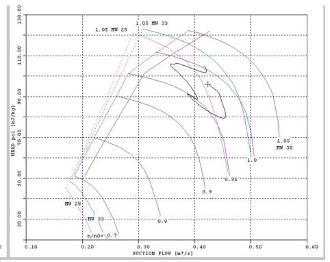 in an increase in compression head which moves the operating point towards the