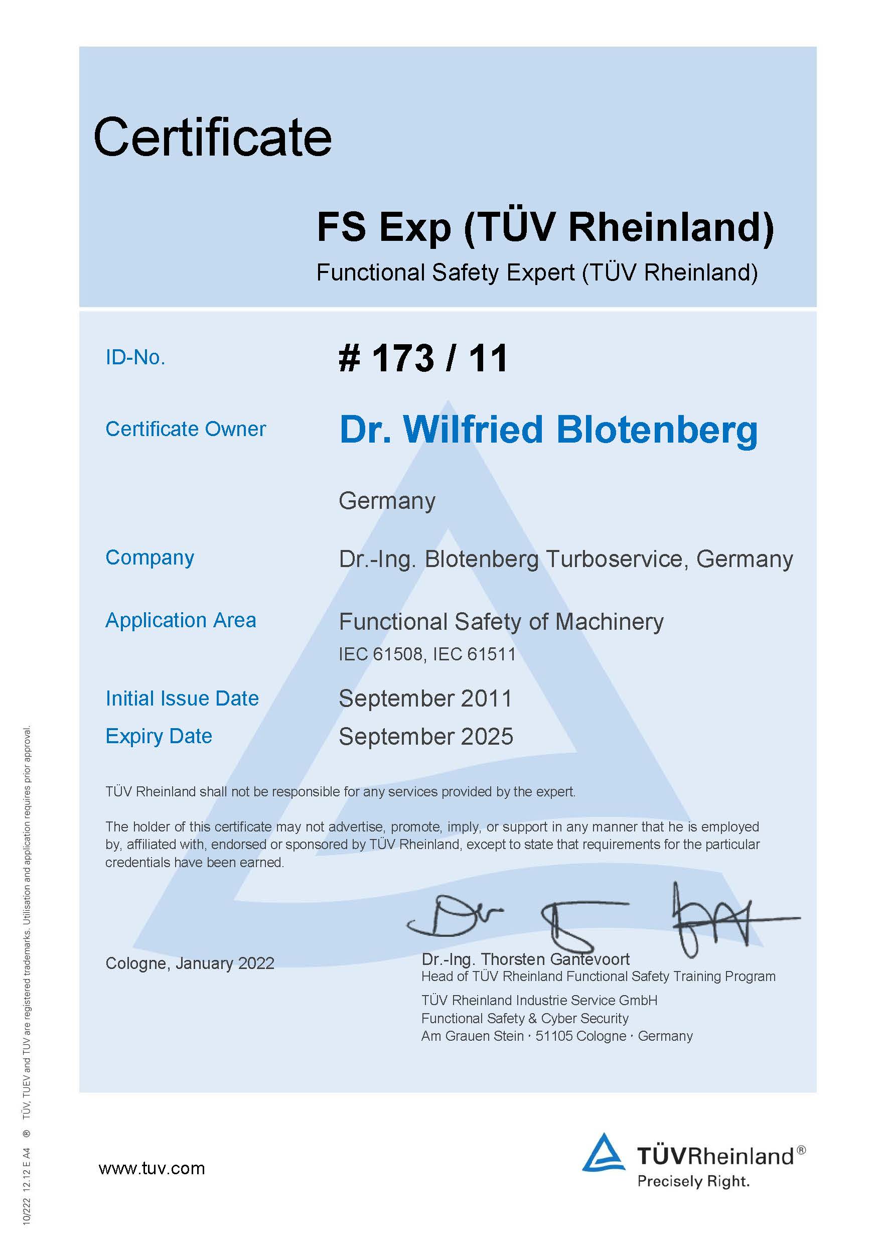- Funktional Safety: Dr. Blotenberg works since many years in the field of functional safety. He is TÜV Rheinland approved FSE (Functional Safety Engineer) and Functional Safety Expert.